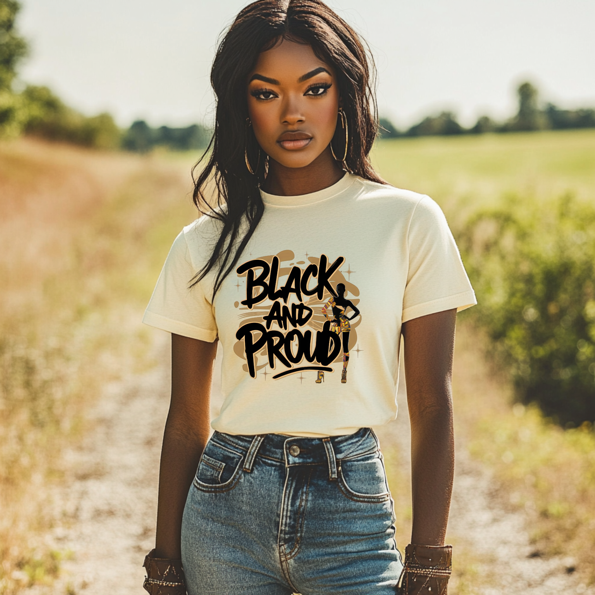 Celebrate confidence and heritage with our "Black and Proud" T-shirt, a bold statement piece designed to empower and inspire. Made from high-quality, breathable cotton, this shirt offers exceptional comfort and durability, perfect for everyday wear. Featuring an eye-catching design with striking typography and powerful imagery, this tee is a must-have for anyone proud of their roots and identity. Whether you're heading to a cultural event, a casual outing, or simply want to express yourself, this t-shirt makes a statement wherever you go. Embrace your pride in style, comfort, and confidence. Order yours today and wear your heritage with honor!
