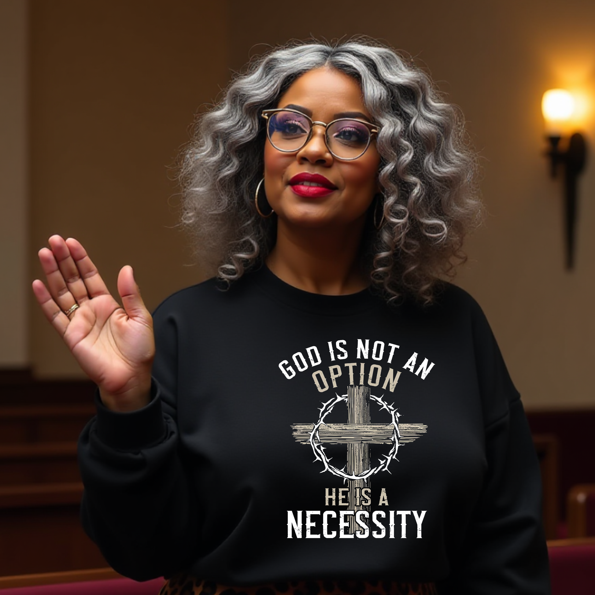 Let your wardrobe reflect your faith with this “God Is Not an Option, He Is a Necessity” t-shirt—a wearable testimony to what truly matters. Designed with a rustic wooden cross encircled by a crown of thorns, this Christian graphic tee speaks volumes without saying a word. The high-quality cotton fabric ensures comfort, while the bold, faith-filled message sparks conversations and spreads inspiration. Whether you're leading prayer, attending Sunday service, or just running errands, this shirt reminds you—and others—of the truth: God isn’t optional, He’s everything.